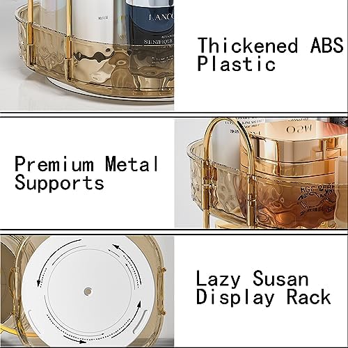 【HIGH QUAILITY MATERIAL】The rotating makeup organizer is made of high-quality ABS plastic material, which is safe,stable and durable with smooth surface.The combination of amber and gold is very elegant and premium. While the green and gold is chic and beautiful.The combination of transparent and gold color is simplicity and warmth.