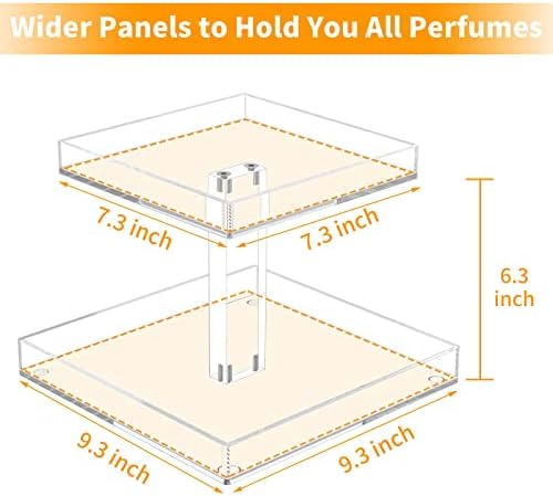 Perfect Space Saver: Design with two-tier of vanity tray maximizes vertical space utilization, allowing you to hold all your favorite perfumes, colognes, lotions and other beauty products while freeing up more space on your dresser and countertop.