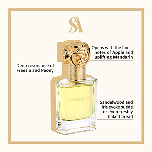 GHARAAM: YOUR NEW SIGNATURE SCENT. Opens with finest notes of Saffron and uplifting Jasmine. The beating heart of the fragrance brings out the deep resonance of Amber. Resins and Cedarwood add depth to the aroma and inspire attention.