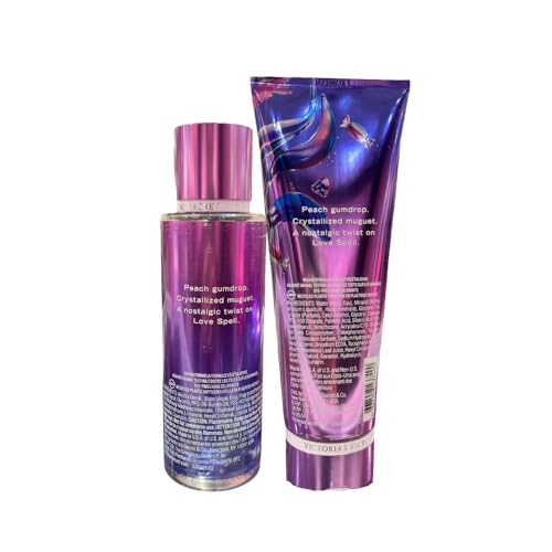 Immerse yourself in the charming elegance of the Victoria’s Secret Love Spell Candied 2pc bundle, featuring the Fragrance Mist and Fragrance Lotion. This captivating duo offers a fun and flirty twist on a classic scent, perfect for adding a touch of sweetness to your daily routine. This set ensures your scent is layered and long-lasting, keeping you confident and uplifted from morning to night. The enchanting aroma, characterized by fragrance notes of Peach Gumdrop, Crystallized Muguet, and Candied Cherry, wraps you in a delightful sensory experience. Elevate your fragrance collection with this irresistible Victoria’s Secret Love Spell Candied set.