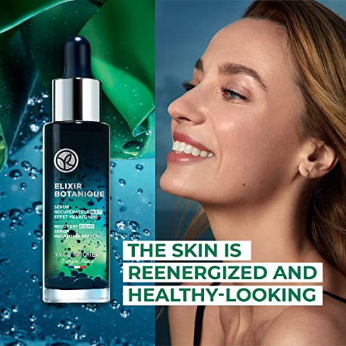 Revitalized and Strengthened: Experience skin recovery and revitalization after 1 month, as your skin becomes stronger and revitalized with Yves Rocher Elixir Botanique Recovery Night Serum Advanced Skincare for Overnight Renewal 30 milliliters Micro-Droplet Biphase Texture: Enjoy the unique texture of our serum, with micro-droplets that deliver effective results. Easy Application: Shake before each use and apply before your night care routine, covering the entire face. Recovery Addressing your Rest Quality and Skin: Many individuals face lifestyle-related stress impacting their rest quality, leading to dull skin and pronounced signs of aging. Our Recovery Night Serum helps break this cycle and provides a solution. Our serum combines the Land-Sea complex with Gardenia flower extract known for promoting rest. benefiting skin with antioxidant and protective properties against visible signs of aging.