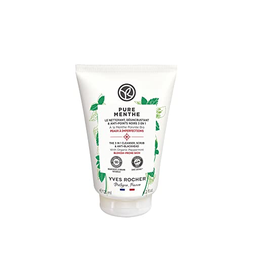 Yves Rocher The 3 in 1 Cleanser, Scrub & Blackheads – Pure Menthe | Face Cleanser to Unclog & Purify Pores | 4.2 fl oz